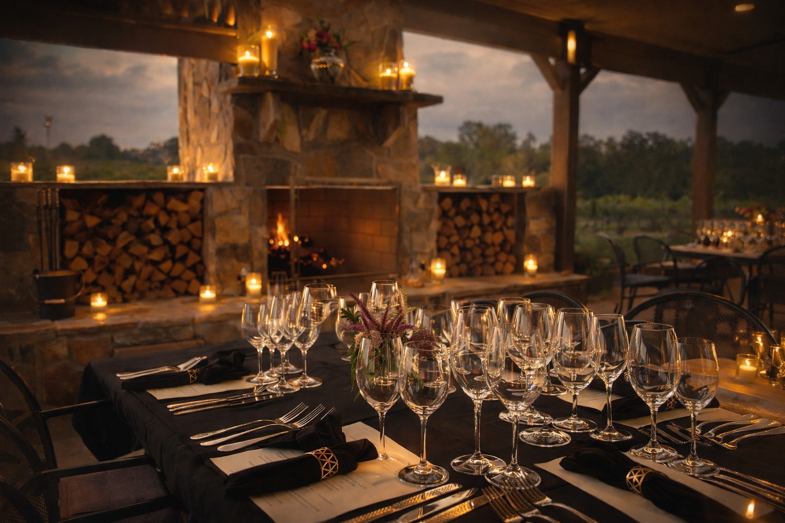 Indulge in a world-class dining experience at Bistro Europa, where our Chef crafts seasonal dishes that highlight fresh, local ingredients. Dine al fresco under our covered patio, offering breathtaking views of the vineyard. In the colder months, the veranda transforms into a cozy retreat with heaters and a stunning outdoor fireplace. Our indoor dining room offers a beautiful ambiance with private dining rooms available- please call the winery to book private dining rooms.